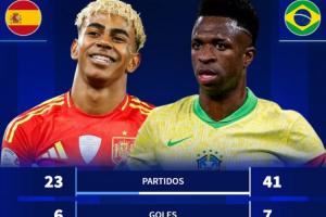 国家队数据对比:亚马尔23场6球12助1冠 维尼修斯41场6球7助0冠